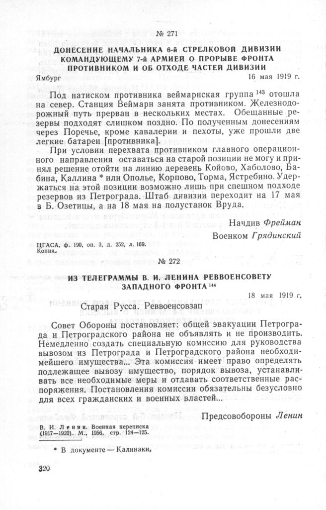 Ленин В.И. Военная переписка (1917-1920). М., 1956, стр. 124-125.