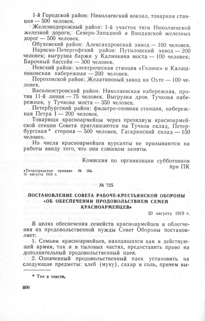 Постановление Совета Рабоче-Крестьянской Обороны «Об обеспечении продовольствием семей красноармейцев». 20 августа 1919 г.