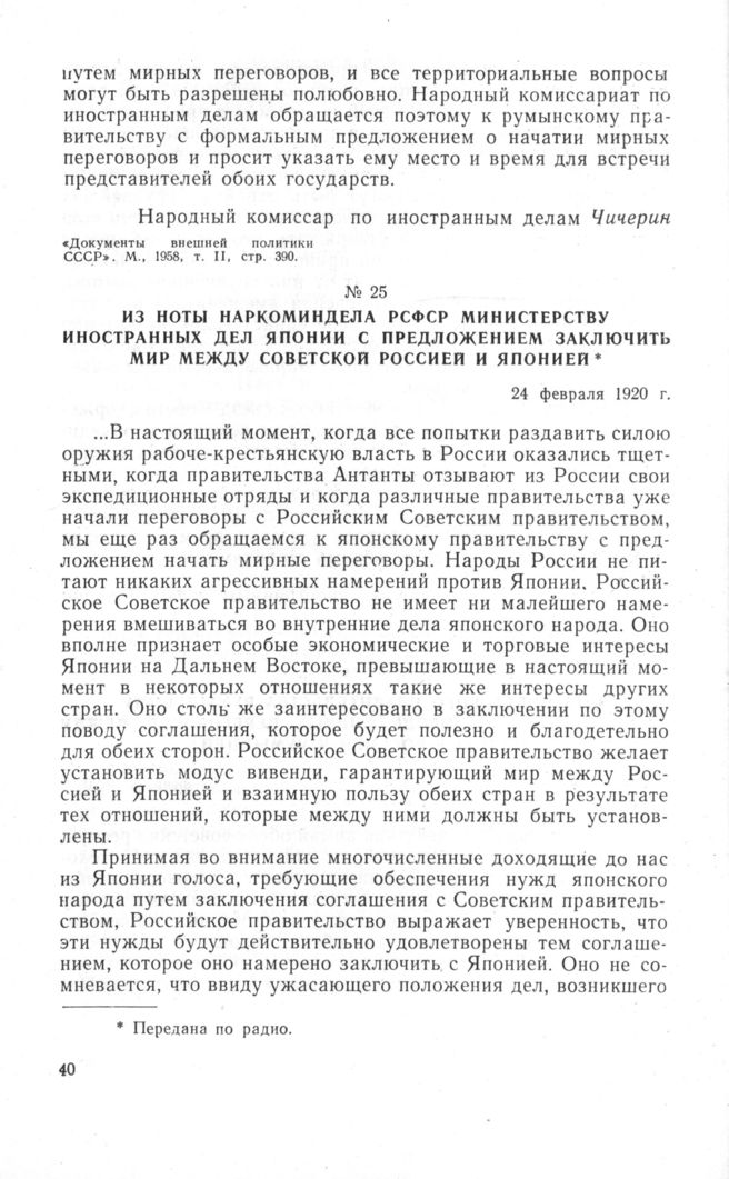 Из ноты Наркоминдела РСФСР Министерству Иностранных Дел Японии с пр...