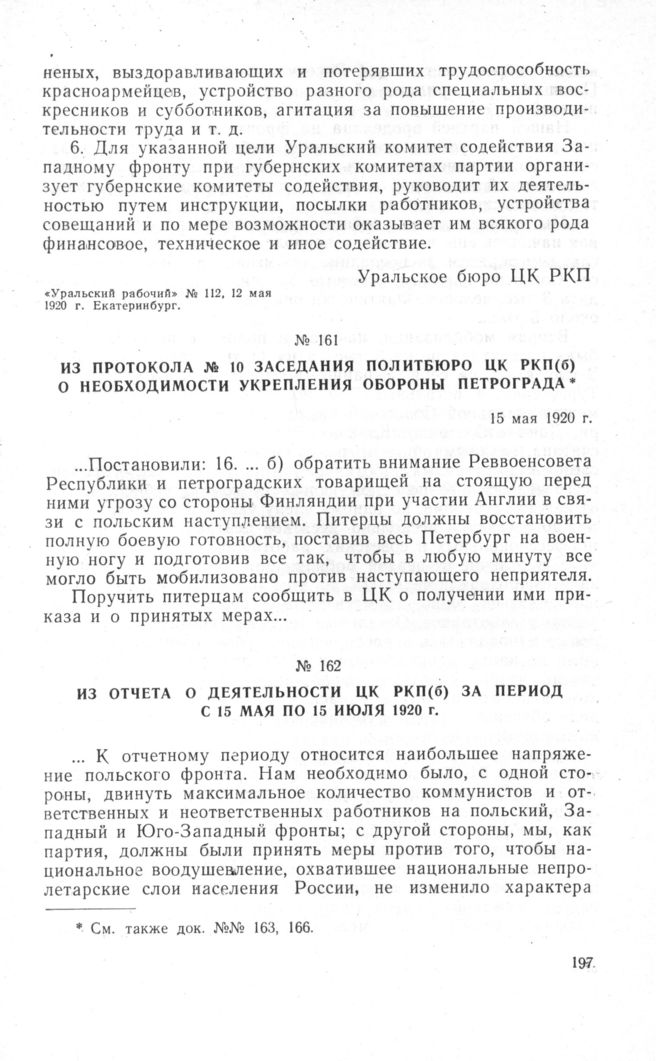 Из протокола № 10 заседания Политбюро ЦК РКП(б) о необходимости укрепления обороны Петрограда. 15 мая 1920 г.
