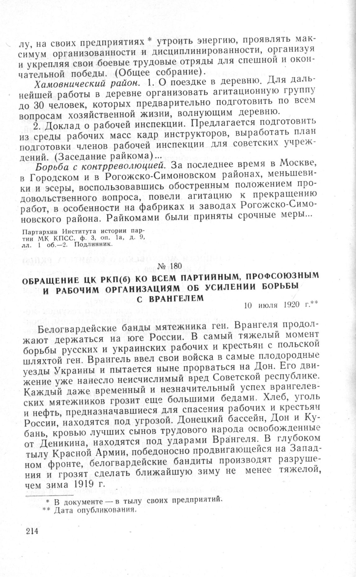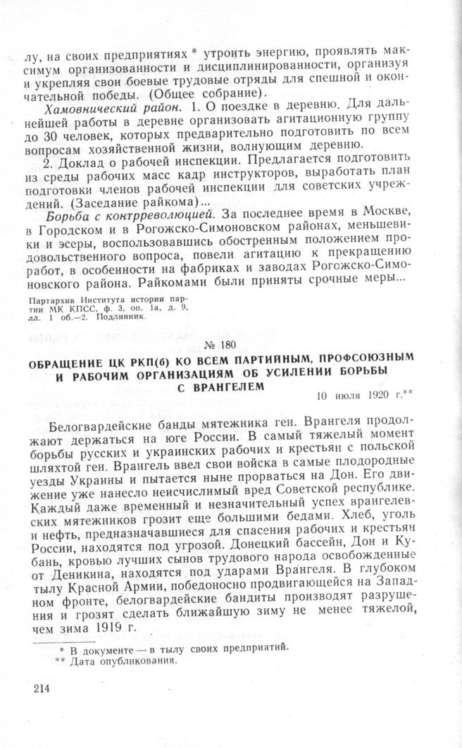 Обращение ЦК РКП(б) ко всем партийным, профсоюзным и рабочим организациям об усилении борьбы с Врангелем. 10 июля 1920 г. // «Правда» № 150, 10 июля 1920 г.
