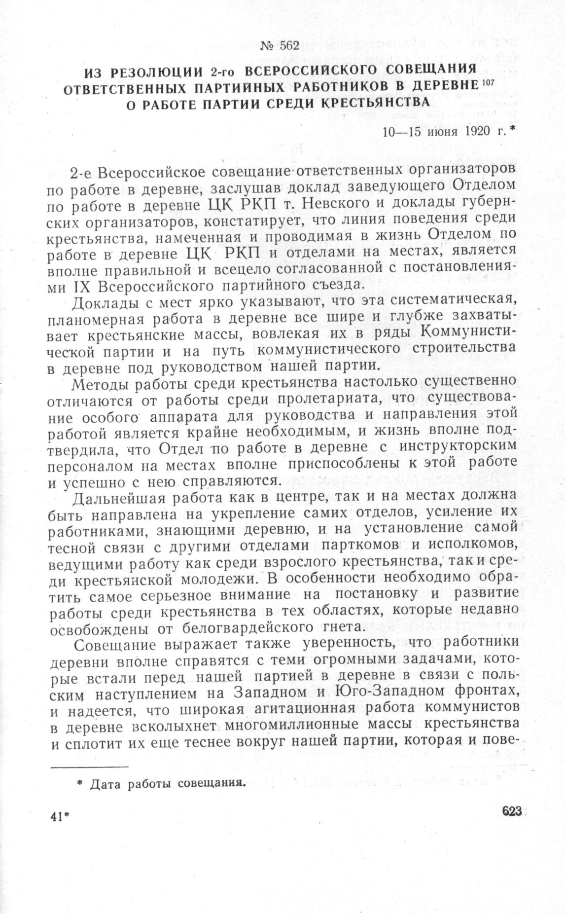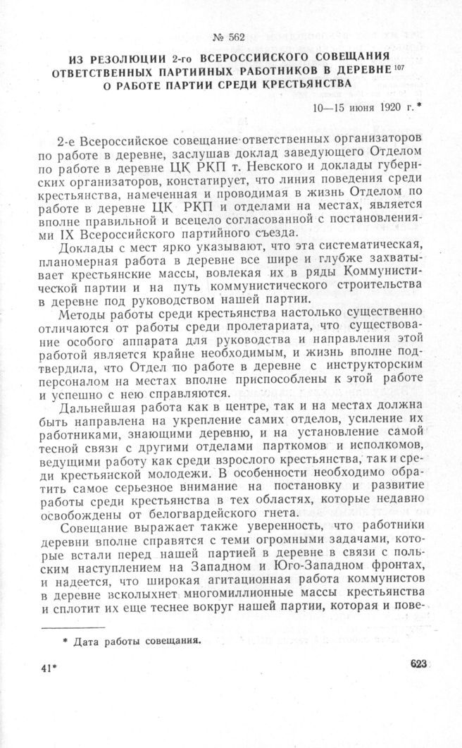 Из резолюции 2-го Всероссийского совещания ответственных партийных работников в деревне о работе партии среди крестьянства. 10-15 июня 1920 г. // «Резолюции Второго Всероссийского совещания работников в деревне (с 10-го по 15-е июня 1920 г.)». М., 1920, стр. 3-4.