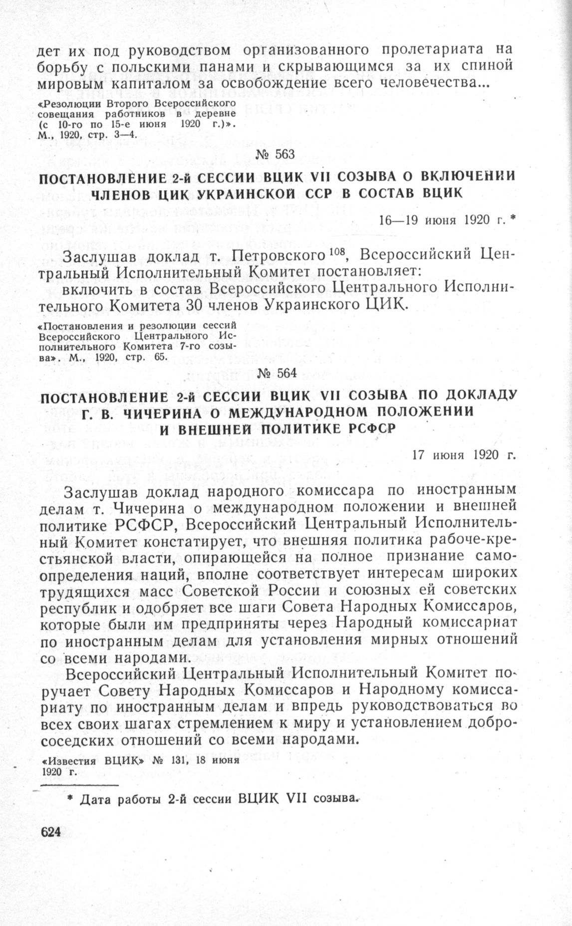 Постановление 2-й сессии ВЦИК VII созыва о включении членов ЦИК Украинской ССР в состав ВЦИК. 16-19 июня 1920 г. // «Постановления и резолюции сессий Всероссийского Центрального Исполнительного Комитета 7-го созыва». М., 1920, стр. 65.
