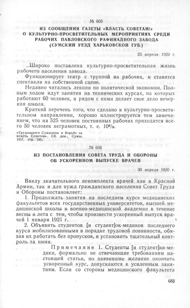 Из сообщения газеты «Власть Советам!» о культурно-просветительных мероприятиях среди рабочих Павловского рафинадного завода (Сумский уезд Харьковской губ.) 25 апреля 1920 г. // «Трудящиеся Сумщины в борьбе за власть Советов». Сб. док., Сумы, 1957, стр. 245.
