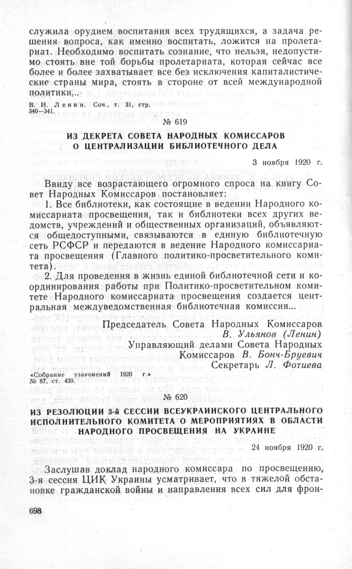 Из декрета Совета Народных Комиссаров о централизации библиотечного дела. 3 ноября 1920 г. // «Собрание узаконений 1920 г.» № 87. ст. 439.