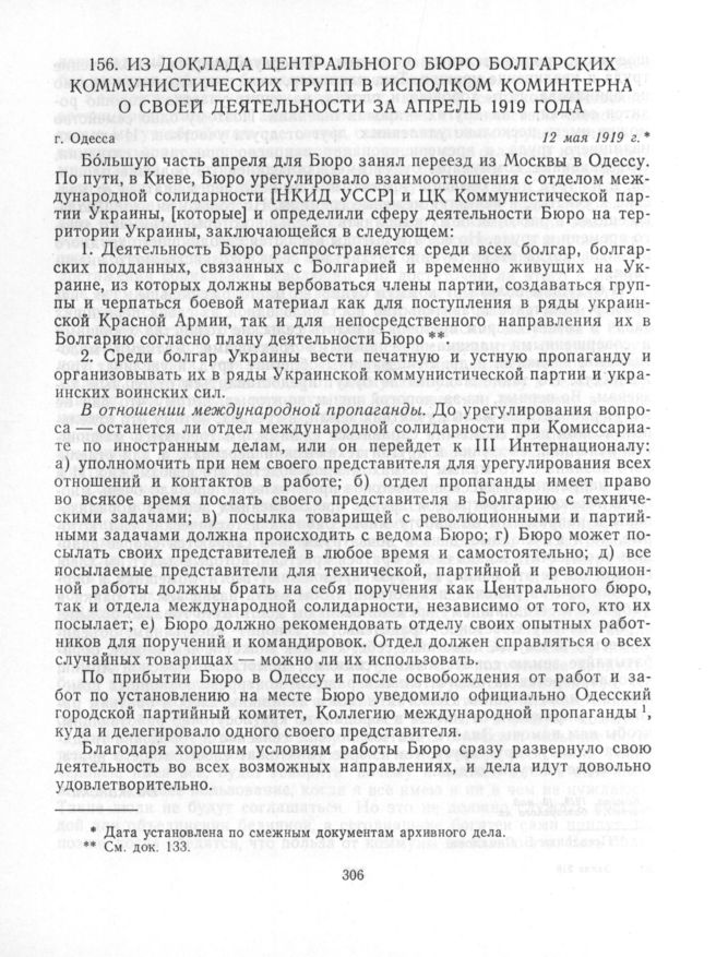 Из доклада Центрального бюро болгарских коммунистических групп в Исполком Коминтерна о своей деятельности за апрель 1919 года. 12 мая 1919 г. // ЦПА ИМЛ. Заверенная копия.