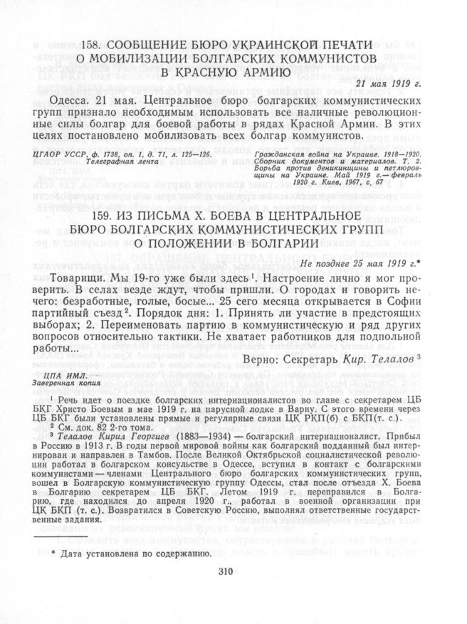 Из письма X. Боева в Центральное бюро болгарских коммунистических групп о положении в Болгарии. Не позднее 25 мая 1919 г. // ЦПА ИМЛ. Заверенная копия.