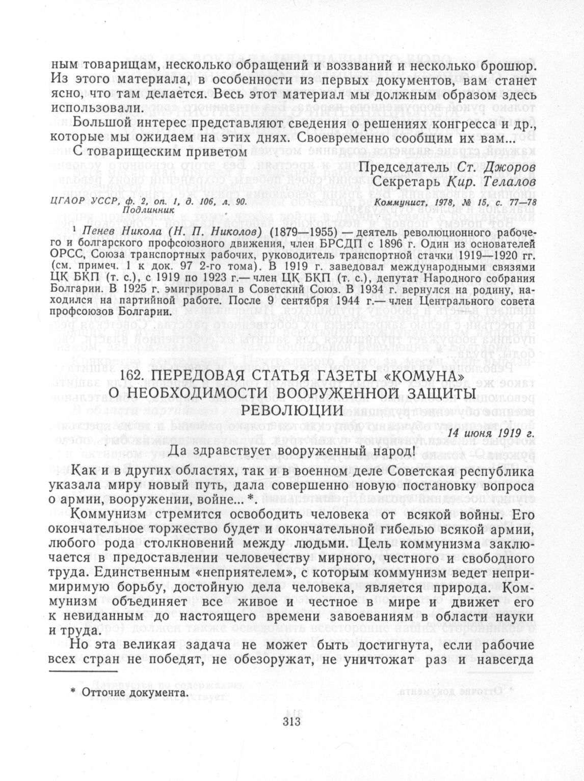 Передовая статья газеты «Комуна» о необходимости вооруженной защиты революции. 14 июня 1919 г. // Комуна, 1919, 14 юни. Перевод с болгарского яз.
