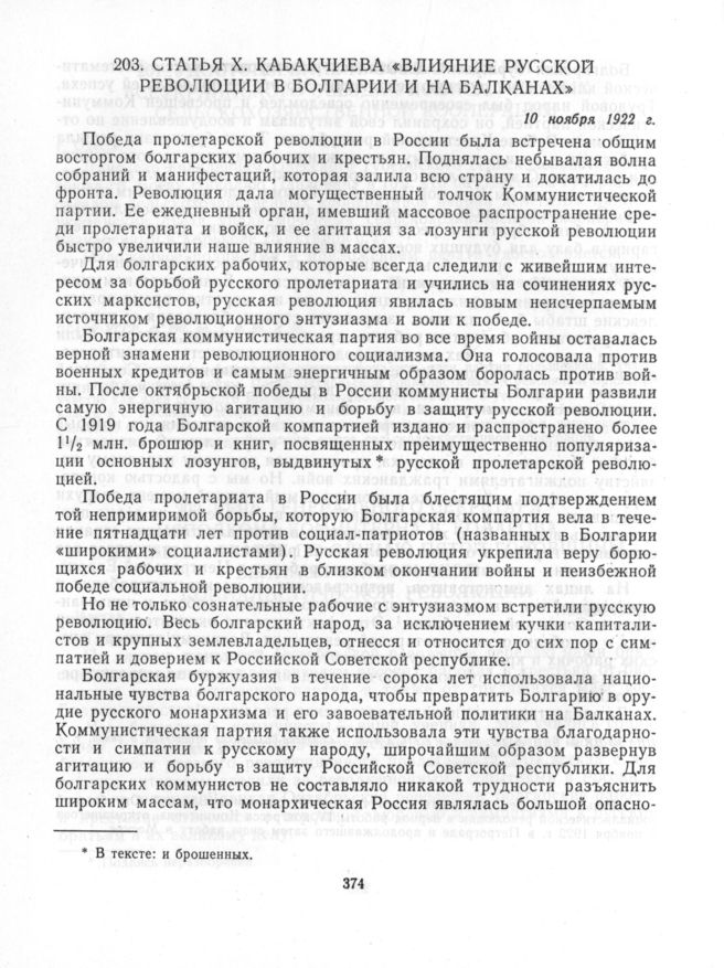 Статья X. Кабакчиева «Влияние русской революции в Болгарии и на Балканах». 10 ноября 1922 г. // Петроградская правда, 1922, 10 ноября.
