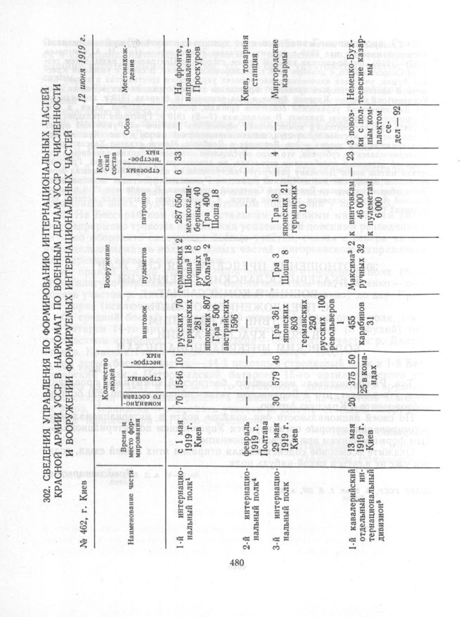 Сведения управления по формированию интернациональных частей Красной Армии УССР в Наркомат по военным делам УССР о численности и вооружении формируемых интернациональных частей. 12 июня 1919 г. // ЦГАСА, ф. 25860, оп. 2, д. 65, л. 4-5. Заверенная копия. Боевое содружество трудящихся зарубежных стран с народами Советской России (1917- 1922), с. 462-464.
