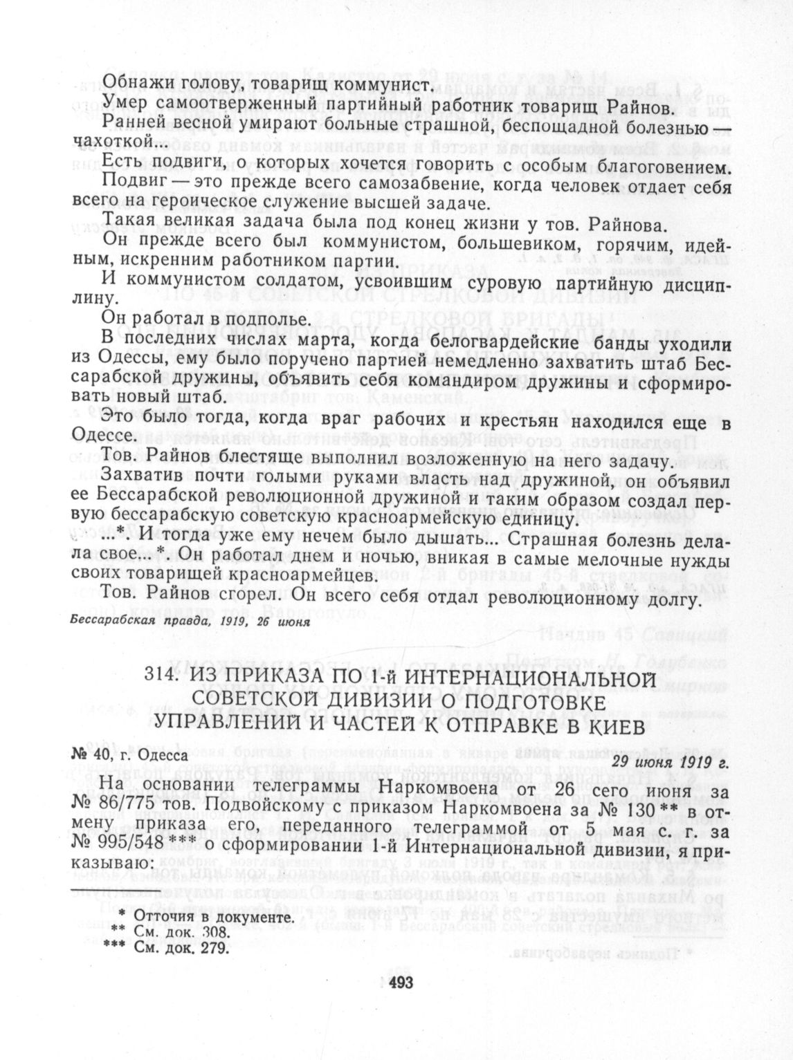 Из приказа по 1-й Интернациональной советской дивизии о подготовке управлений и частей к отправке в Киев. 29 июня 1919 г. // ЦГАСА, ф. 940, оп. 1, д. 2, л. 1. Заверенная копия.