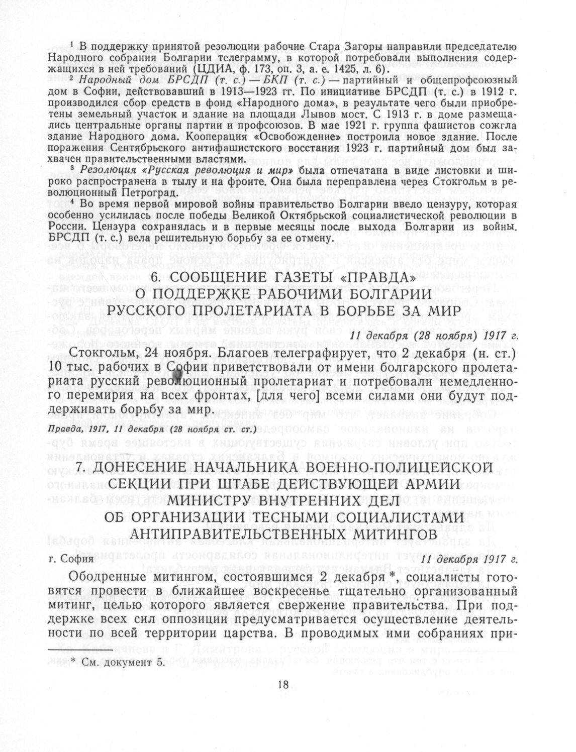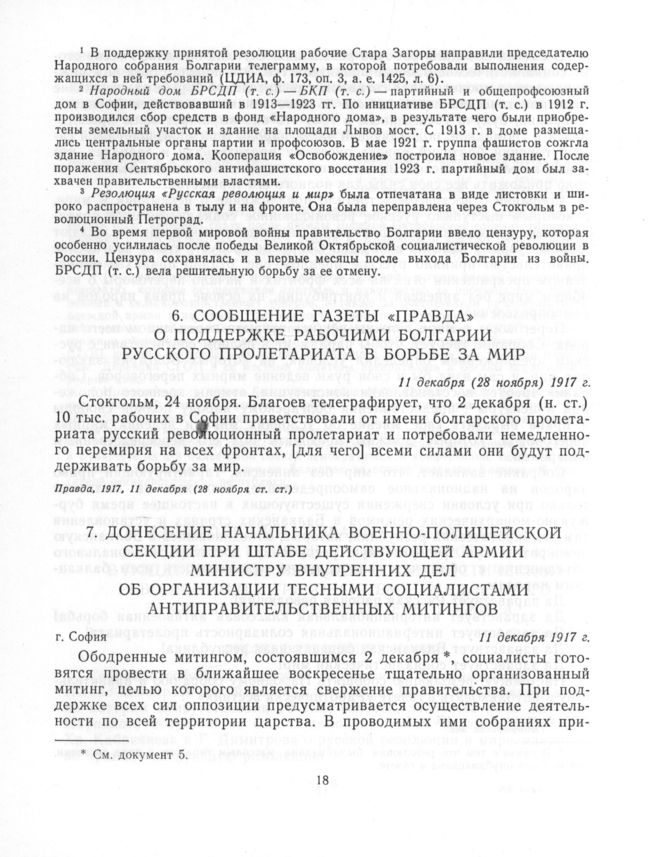Сообщение газеты «Правда» о поддержке рабочими Болгарии русского пролетариата в борьбе за мир. 11 декабря (28 ноября) 1917 г. // Правда, 1917, 11 декабря (28 ноября ст. ст.).