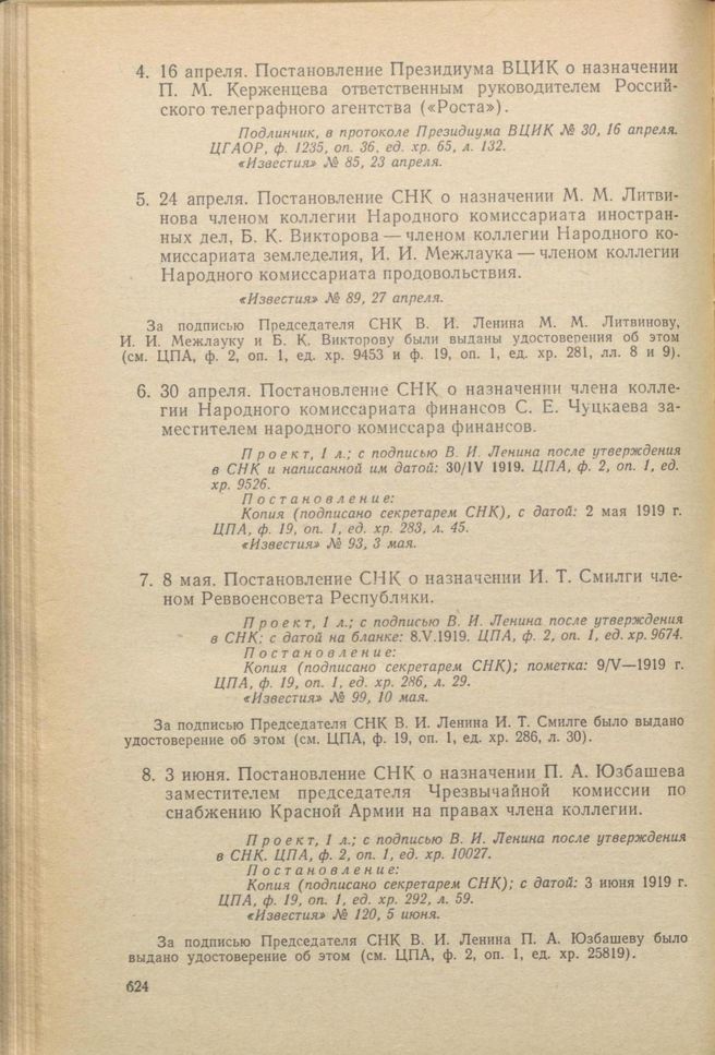 Главная Серия «Экономическая история. Документы, исследования, переводы» Декреты советской власти в 18 т. Декреты Советской власти. Т. V. 1 апреля – 31 июля 1919 г. Документы 24 апреля. Постановление СНК о назначении М. М. Литвинова членом к...