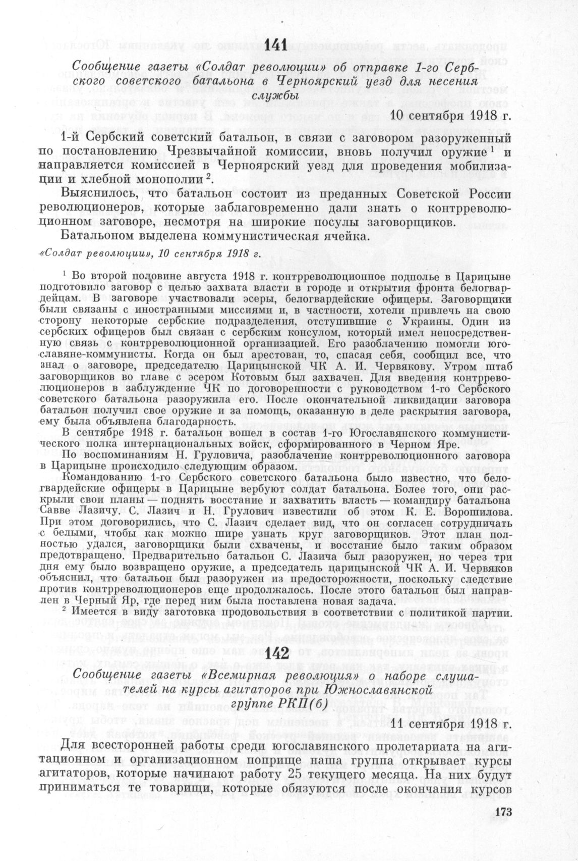 Сообщение газеты «Всемирная революция» о наборе слушателей на курсы агитаторов при Южнославянской группе РКП(б). 11 сентября 1918 г. // «Svjetska revolucija», 11 сентября 1918 г. Перевод с сербскохорватского.
