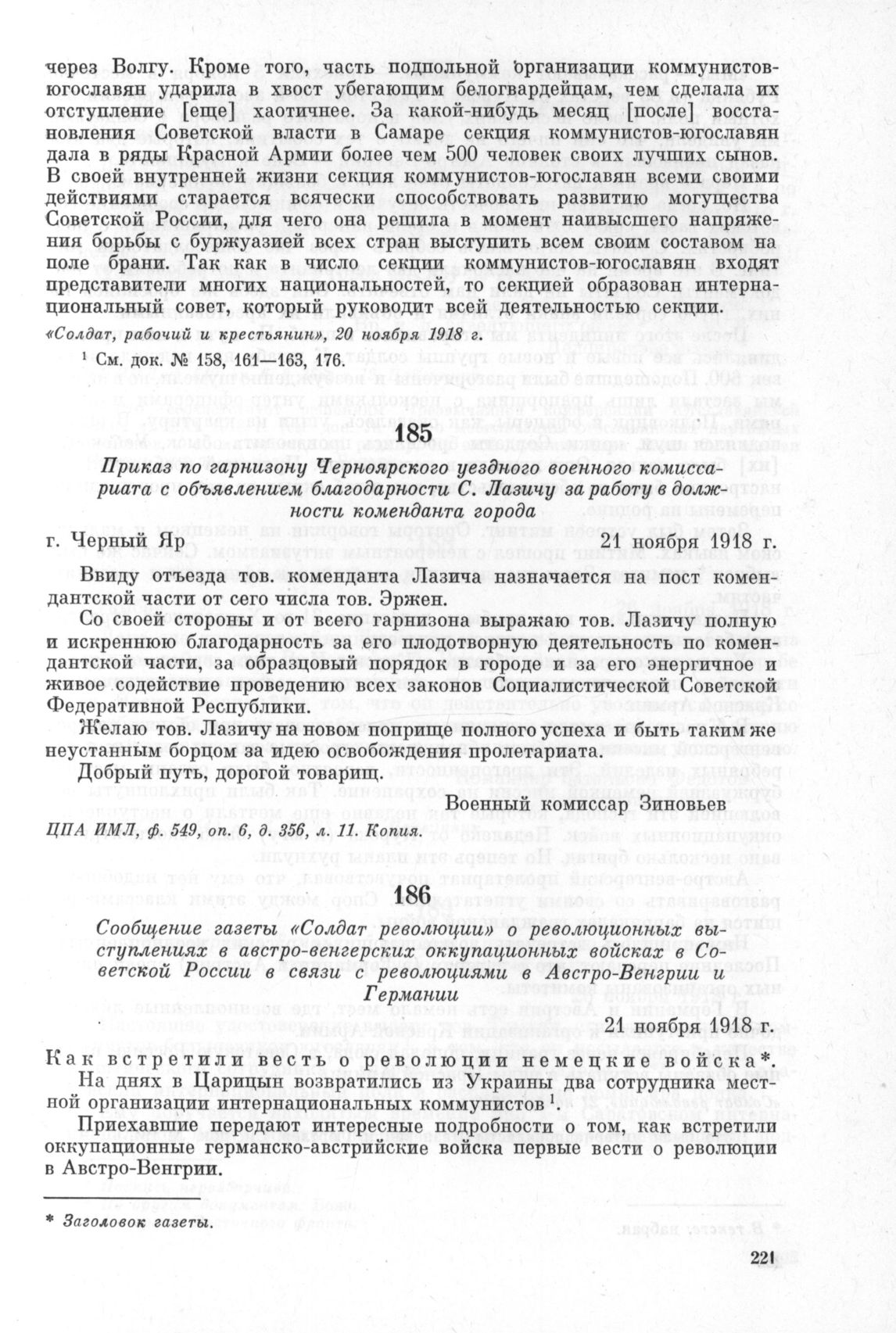 Участие югославских трудящихся в Октябрьской революции и гражданской войне в СССР: Сб. док. и материалов. — М.: Наука, 1976.