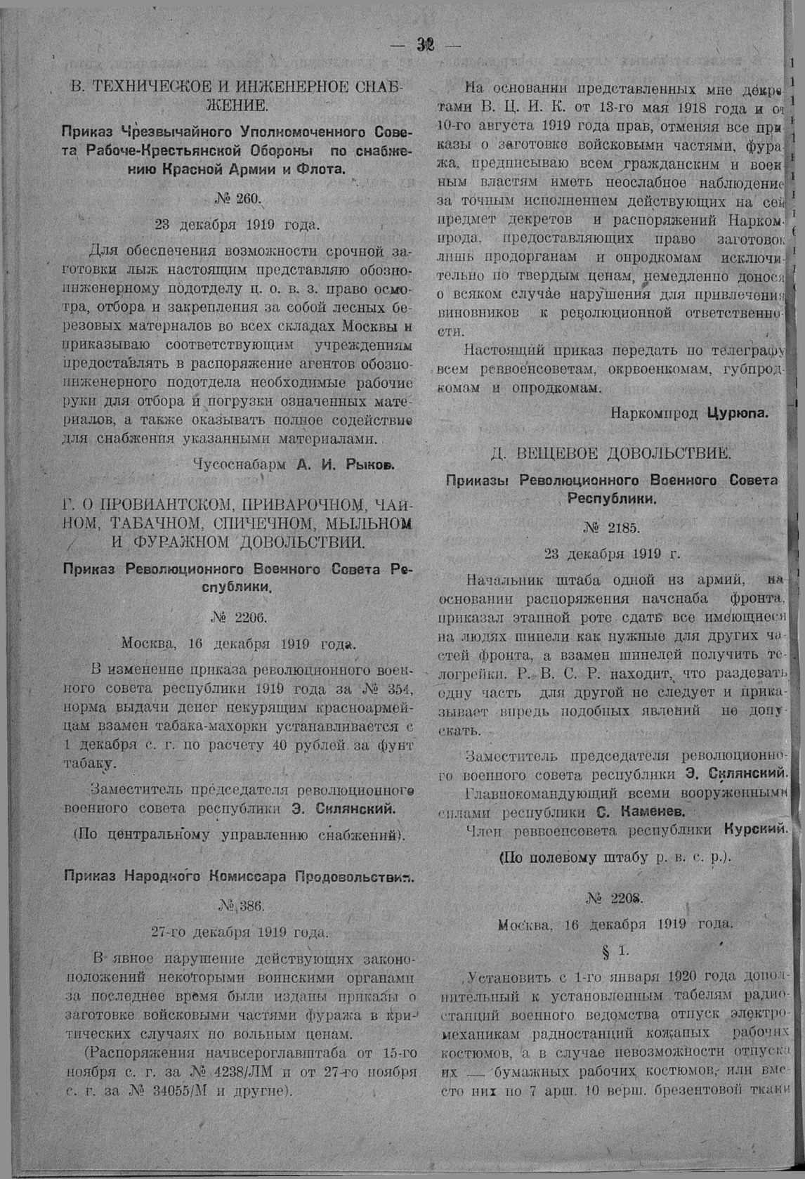 Приказ Революционного Военного Совета Республики (По полевому штабу р. в. с. р.). № 2185. 23 декабря 1919 г.