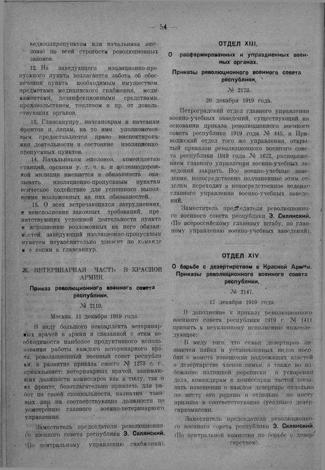 Приказ революционного военного совета республики (По центральному управлению снабжений). № 2110. Москва, 11 декабря 1919 года