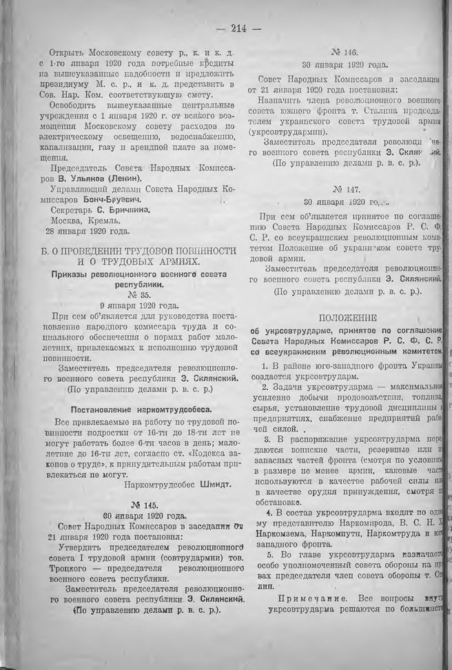 Приказ Революционного военного совета республики. (По управлению делами р. в. с. р.). № 147. 30 января 1920 года