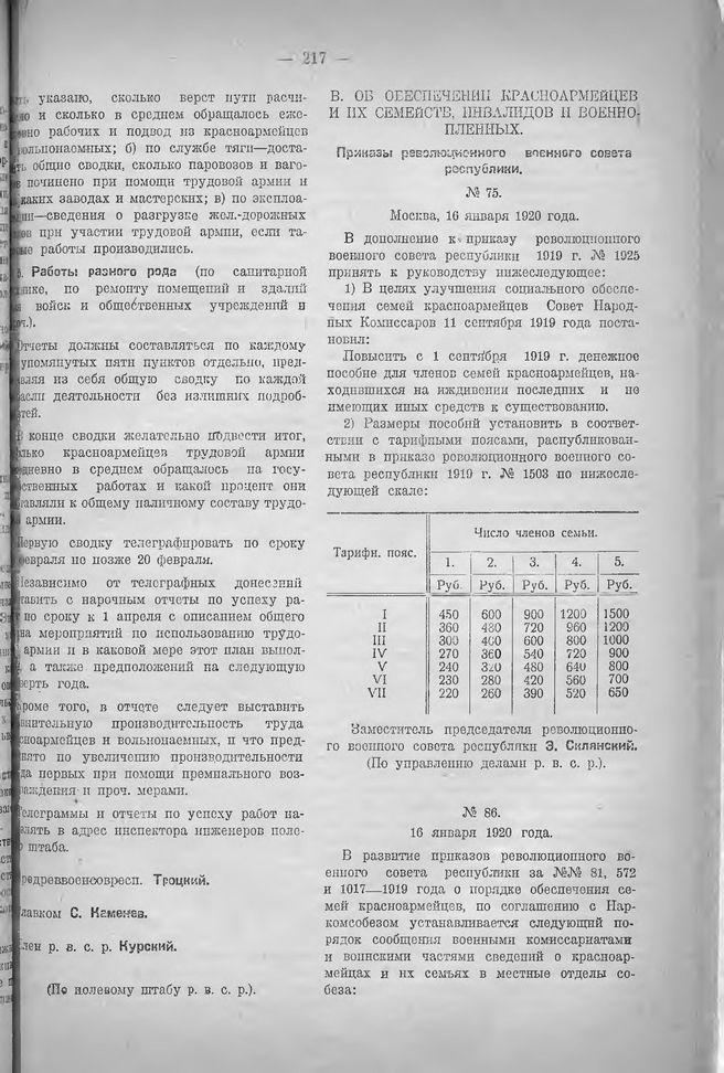 Приказ Революционного военного совета республики. (По управлению делами р. в. с. р.). № 75. Москва, 16 января 1920 года