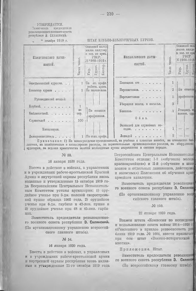 Приказ Революционного военного совета республики. (По всероссийскому главному штабу). № 110. 22 января 1920 года