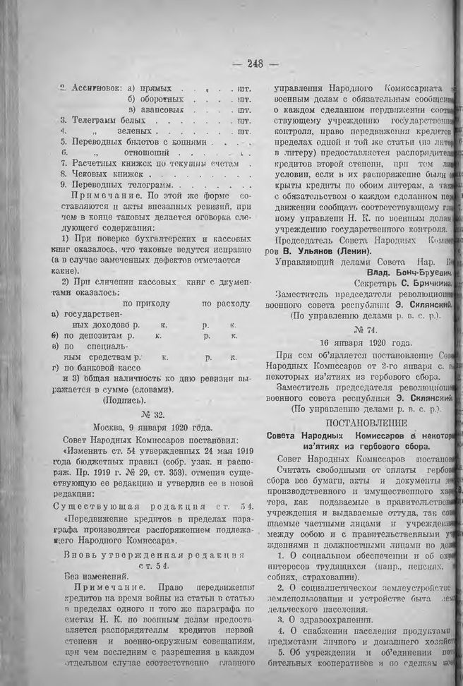 Приказ Революционного военного совета республики. (По управлению делами р. в. с. р.). № 74. 16 января 1920 года