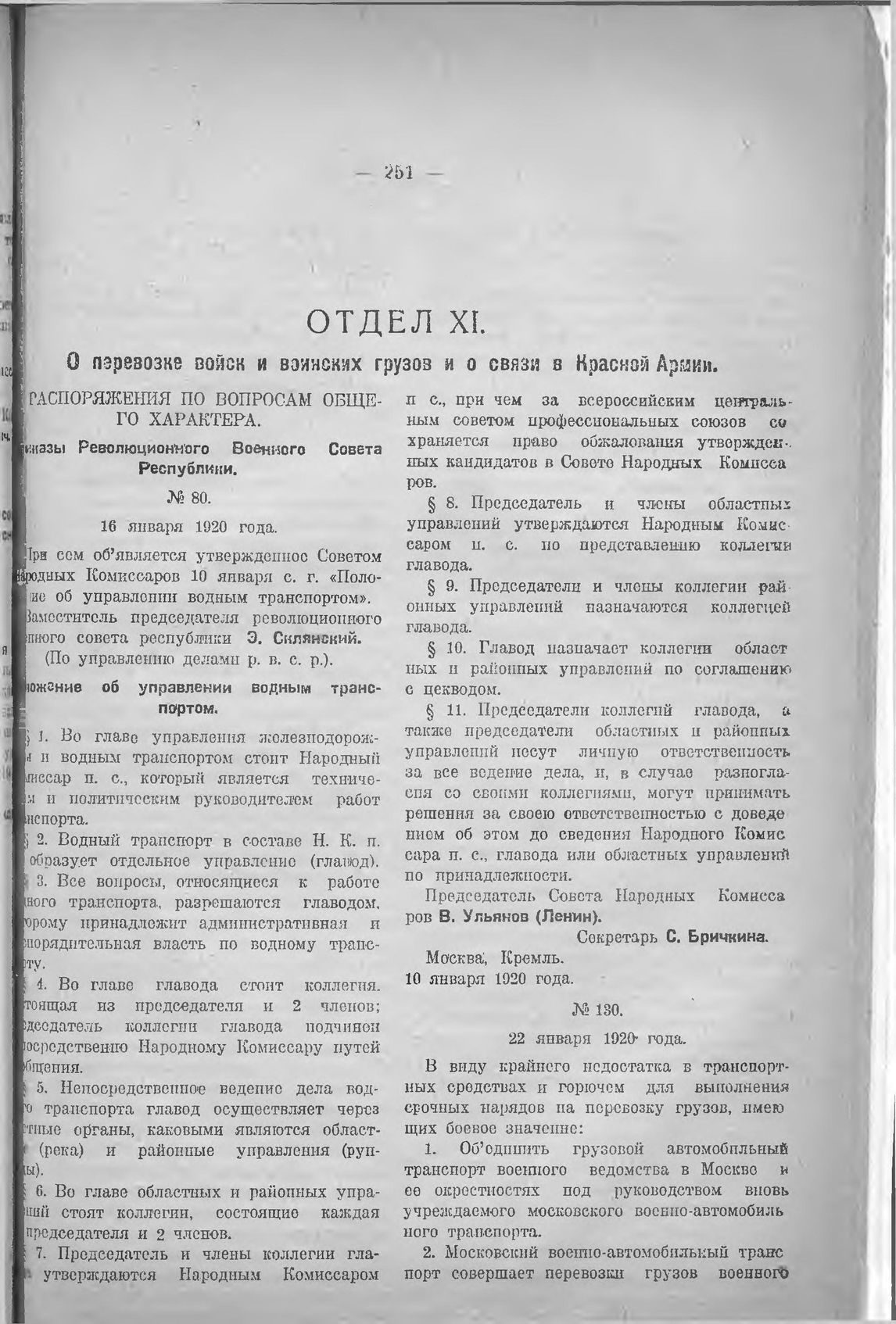 Приказ Революционного военного совета республики. (По центральному управлению снабжений). № 130. 22 января 1920 года