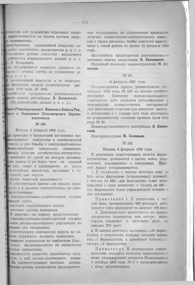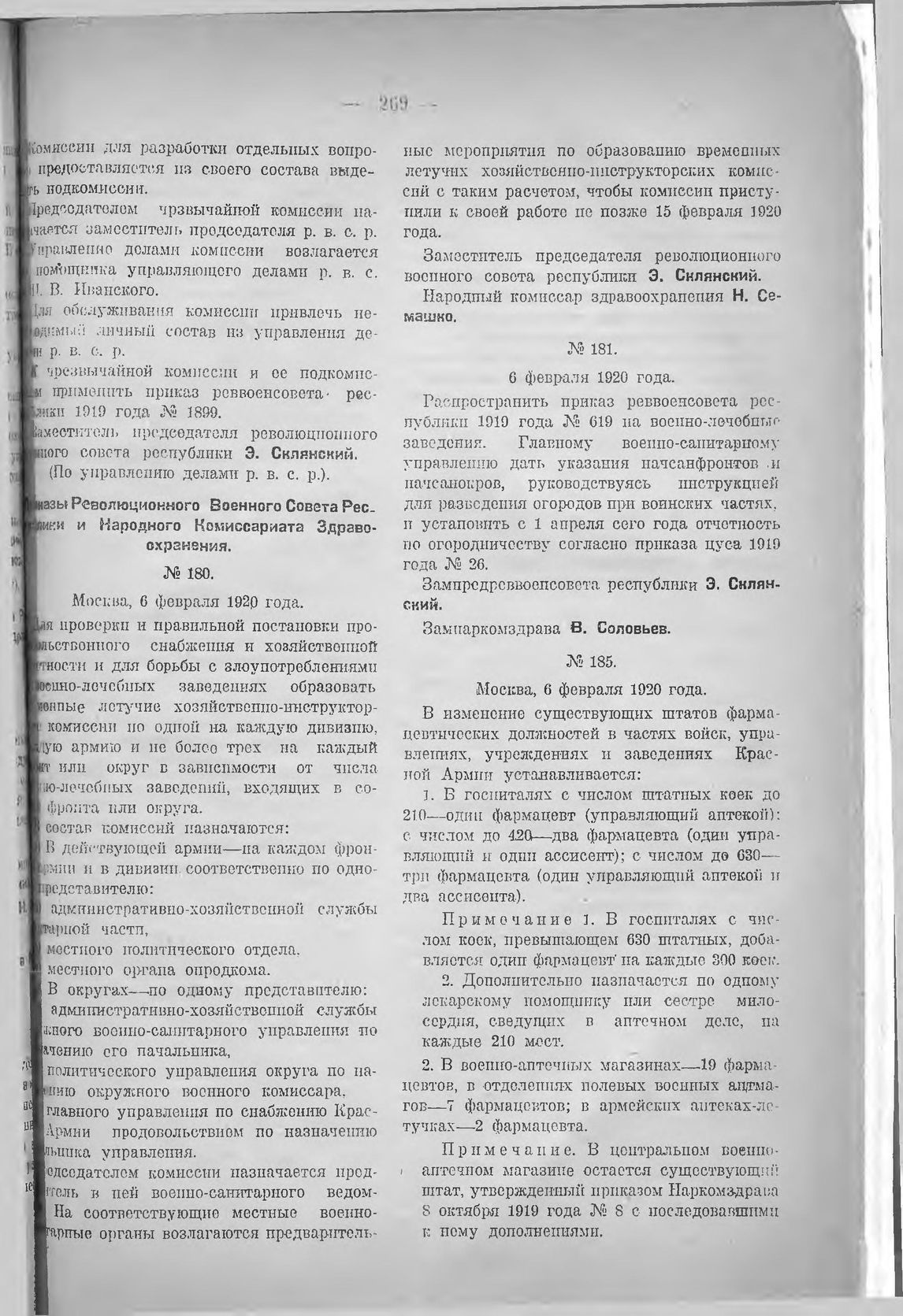 Приказ Революционного военного совета республики. (По главному военно-санитарному управлению). № 185. Москва, 6 февраля 1920 года