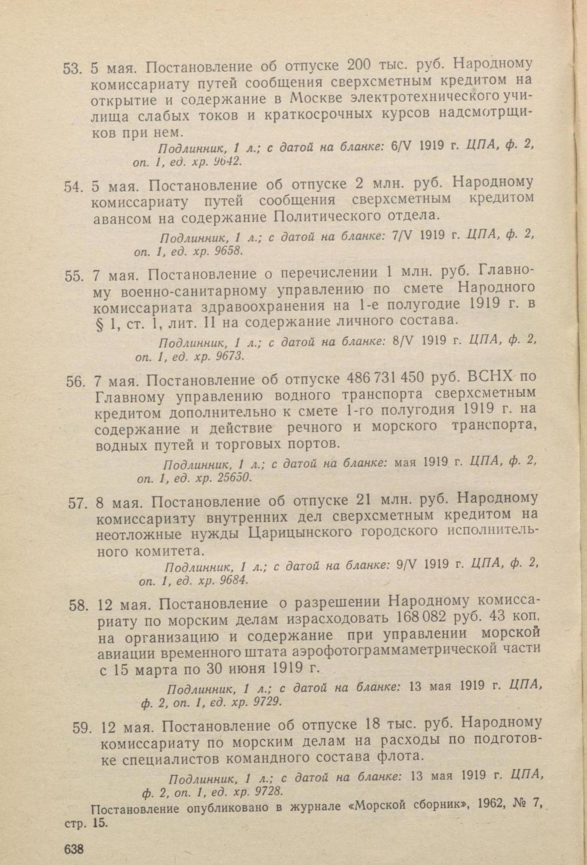 Главная Серия «Экономическая история. Документы, исследования, переводы» Декреты советской власти в 18 т. Декреты Советской власти. Т. V. 1 апреля – 31 июля 1919 г. Документы 5 мая. Постановление об отпуске 2 млн. руб. Народному комиссариату ...