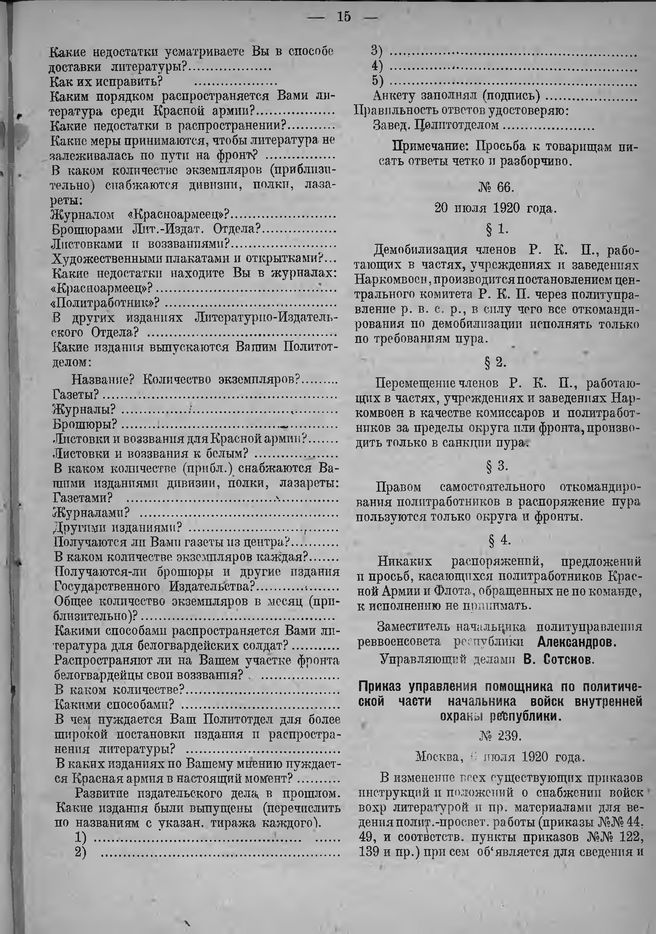 Главная Сборники приказов Революционного Военного Совета Республики Систематизированный сборник приказов и распоряжений центральных учр... Систематизированный сборник приказов и распоряжений центральных учр... Документы Приказ управления помощника по политической части начальника войск ...