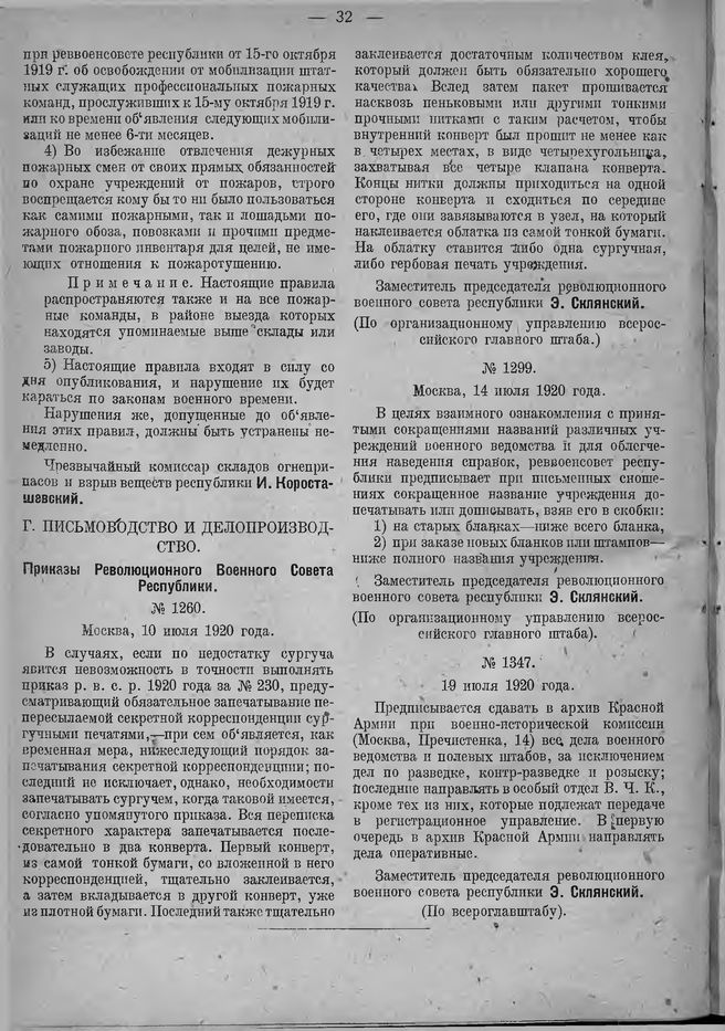 Приказ Революционного Военного Совета Республики. (По всероглавштабу). № 1347. 19 июля 1920 г.