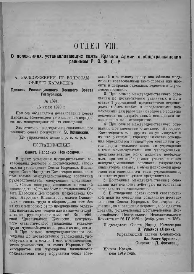 Приказ Революционного Военного Совета Республики (По управлению делами р. в. с. р.) № 1321. 16 июля 1920 года