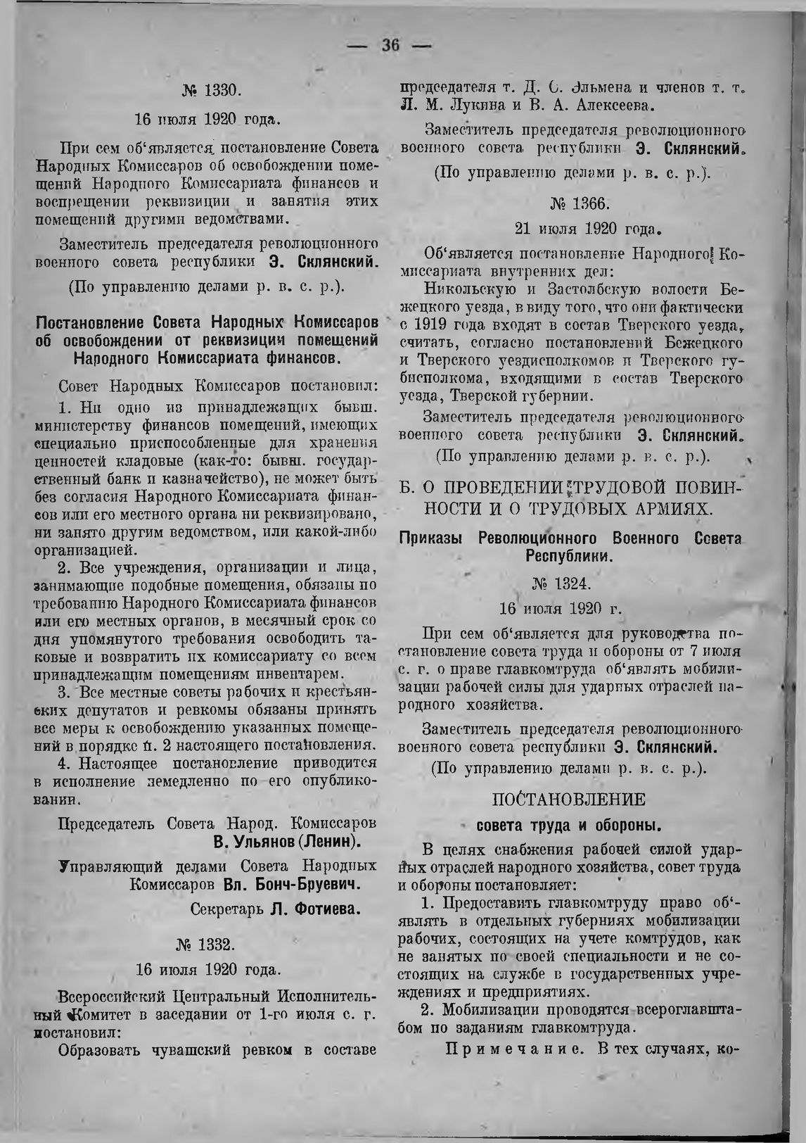 Приказ Революционного Военного Совета Республики (По управлению делами р. в. с. р.) № 1366. 21 июля 1920 года
