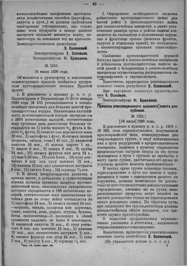 Приказ Революционного Военного Совета Республики (По управлению делами р. в. с. р.) № 1331. 16 июля 1920 года