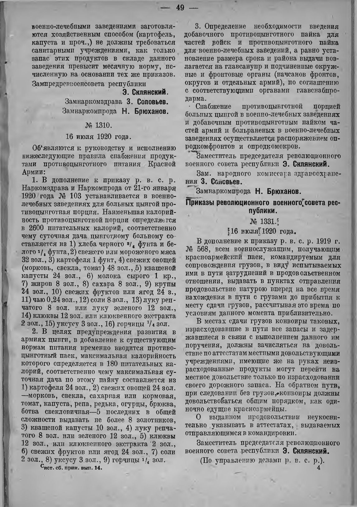 Систематизированный сборник приказов и распоряжений центральных учреждений Военного ведомства. Вып. 14 (15 июля-1 августа 1920 г.) — М., 1920.