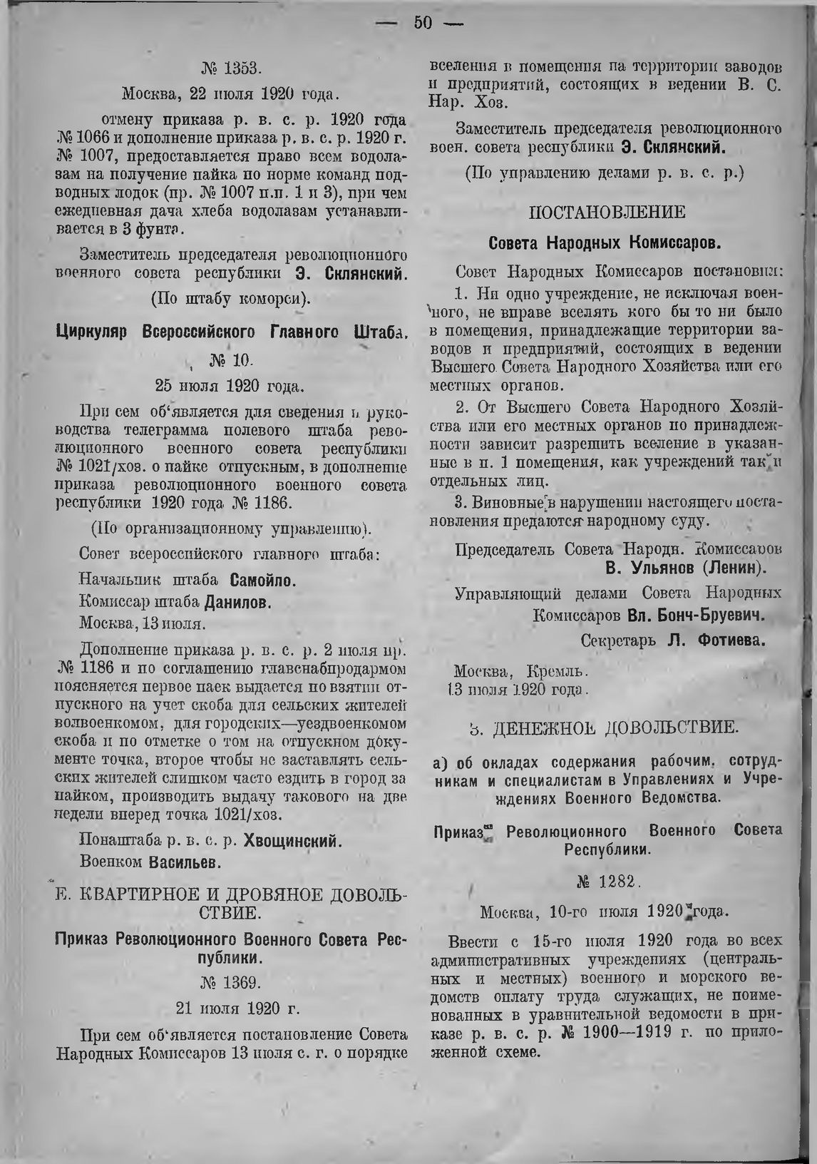 Приказ Революционного Военного Совета Республики (По управлению делами р. в. с. р.) № 1369. 21 июля 1920 года