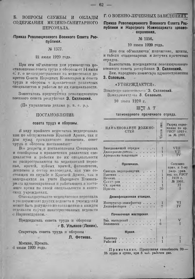 Приказ Революционного Военного Совета Республики (По управлению делами р. в. с. р.) № 1377. 21 июля 1920 года