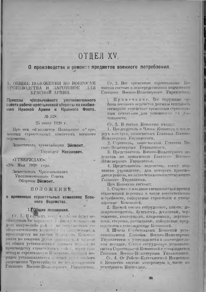 Приказ чрезвычайного уполномоченного совета рабоче-крестьянской обороны по снабжению Красной Армии и Красного Флота. № 578. 25 июня 1920 г.