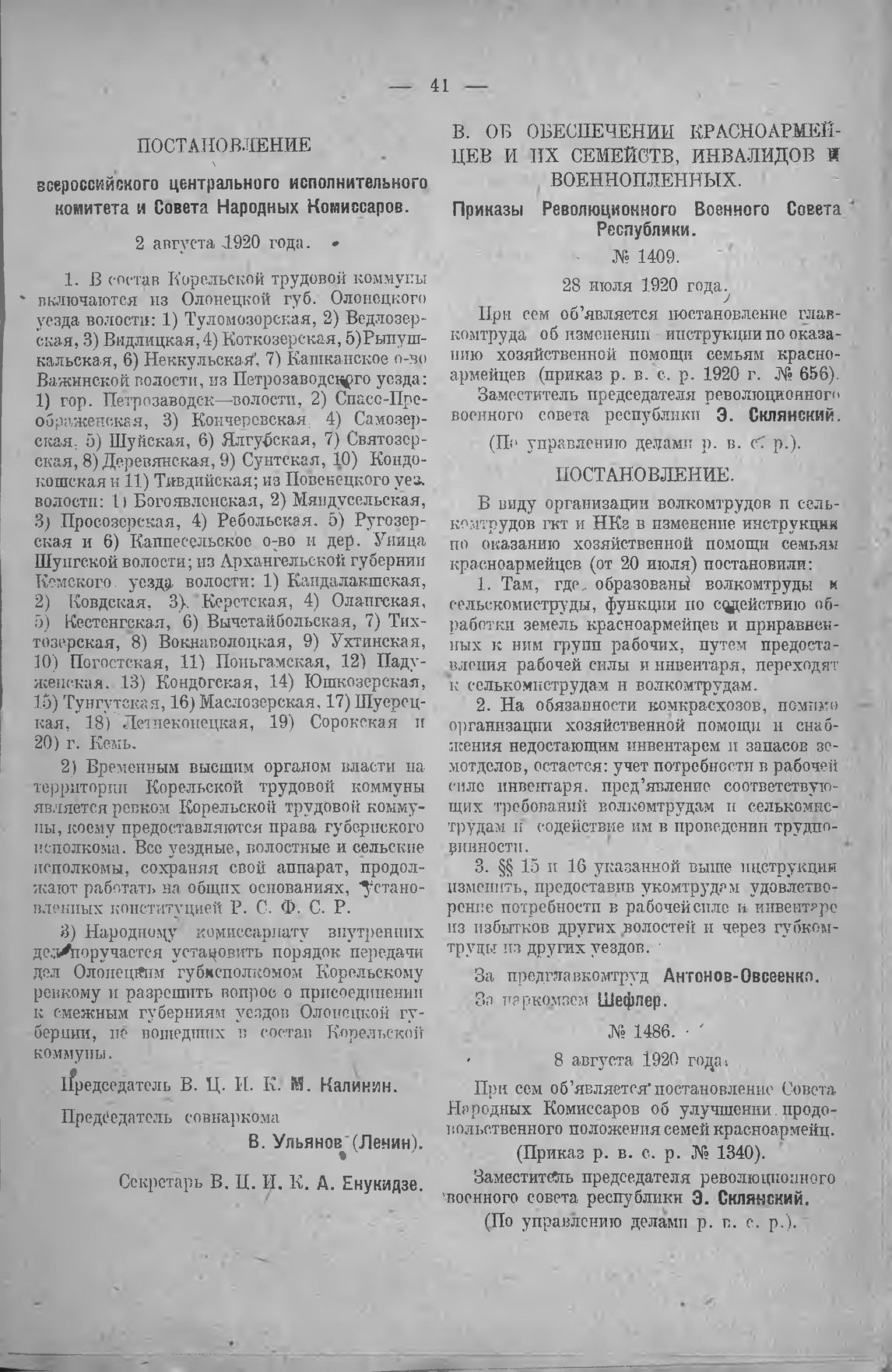 Приказ Революционного Военного Совета Республики. (По управлению делами р. в. с. р.). № 1409. 28 июля 1920 года