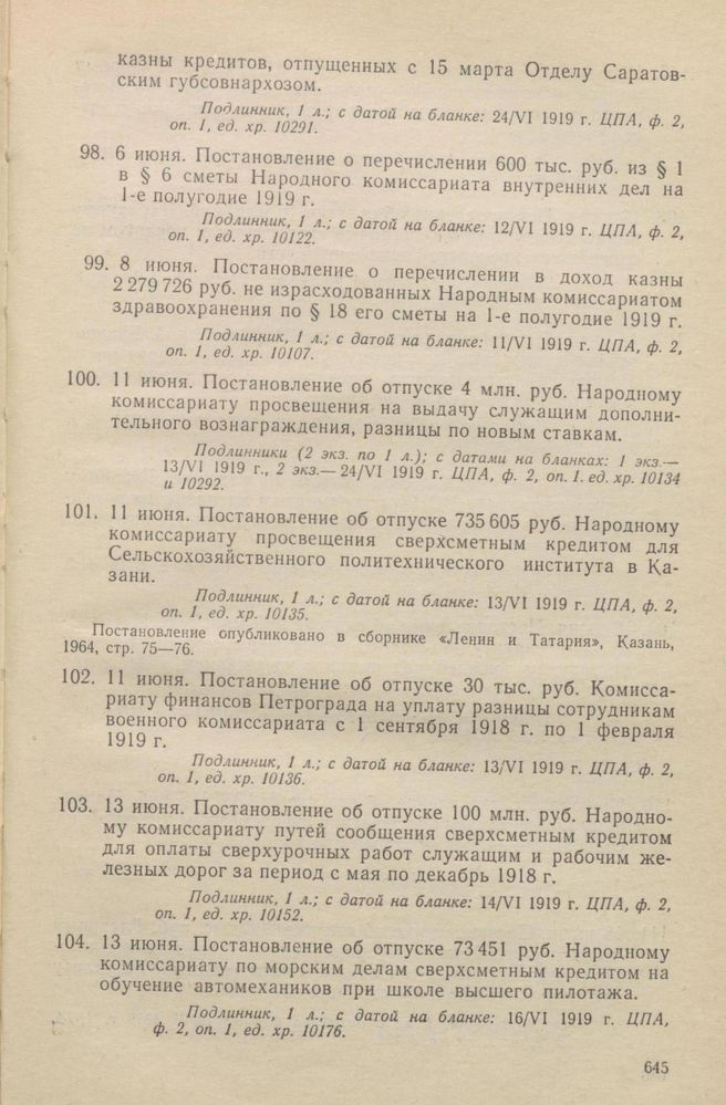 Главная Серия «Экономическая история. Документы, исследования, переводы» Декреты советской власти в 18 т. Декреты Советской власти. Т. V. 1 апреля – 31 июля 1919 г. Документы 11 июня. Постановление об отпуске 735605 руб. Народному комиссариат...