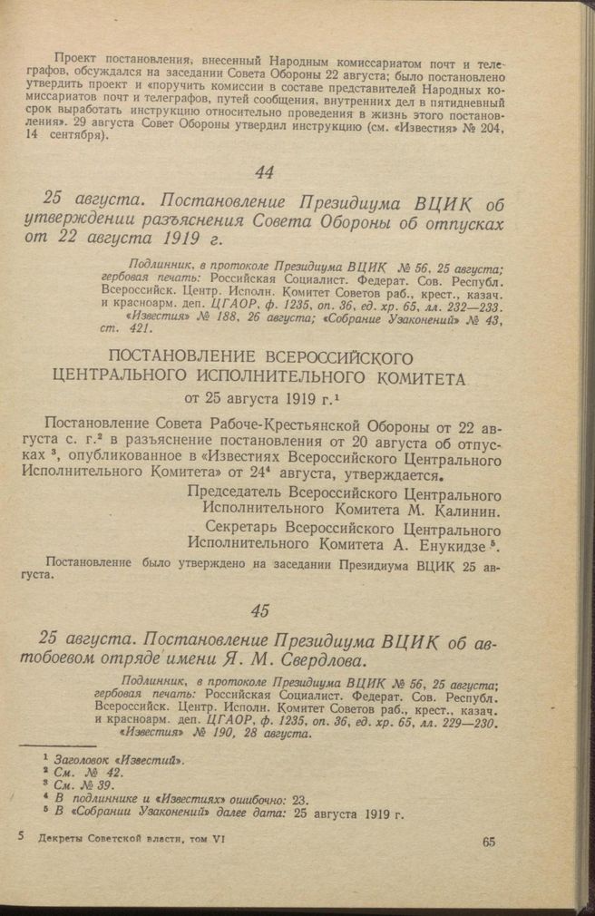 Главная Серия «Экономическая история. Документы, исследования, переводы» Декреты советской власти в 18 т. Декреты Советской власти. Т. VI. 1 августа – 9 декабря 1919 г. Документы 25 августа. Постановление Президиума ВЦИК об утверждении разъяснени...