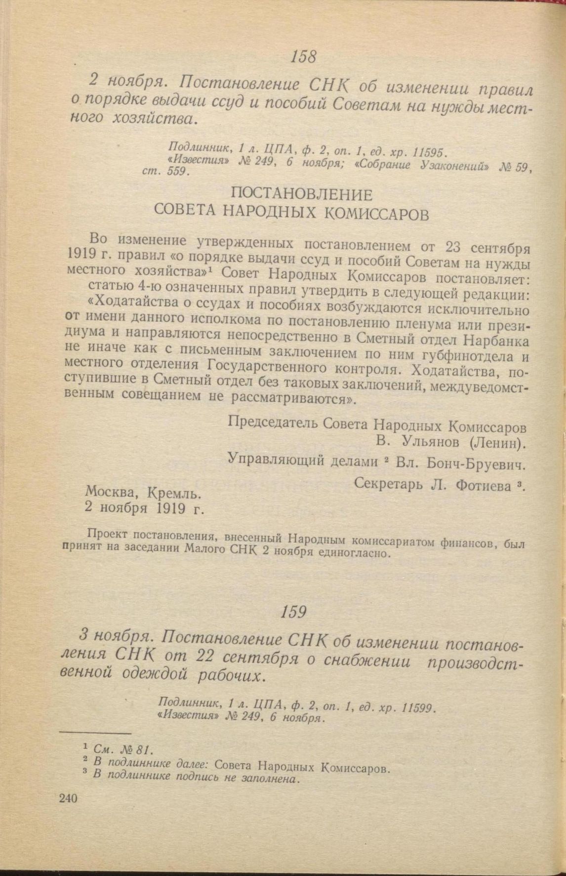 Главная Серия «Экономическая история. Документы, исследования, переводы» Декреты советской власти в 18 т. Декреты Советской власти. Т. VI. 1 августа – 9 декабря 1919 г. Документы 3 ноября. Постановление СНК об изменении постановления СНК от 22 се...