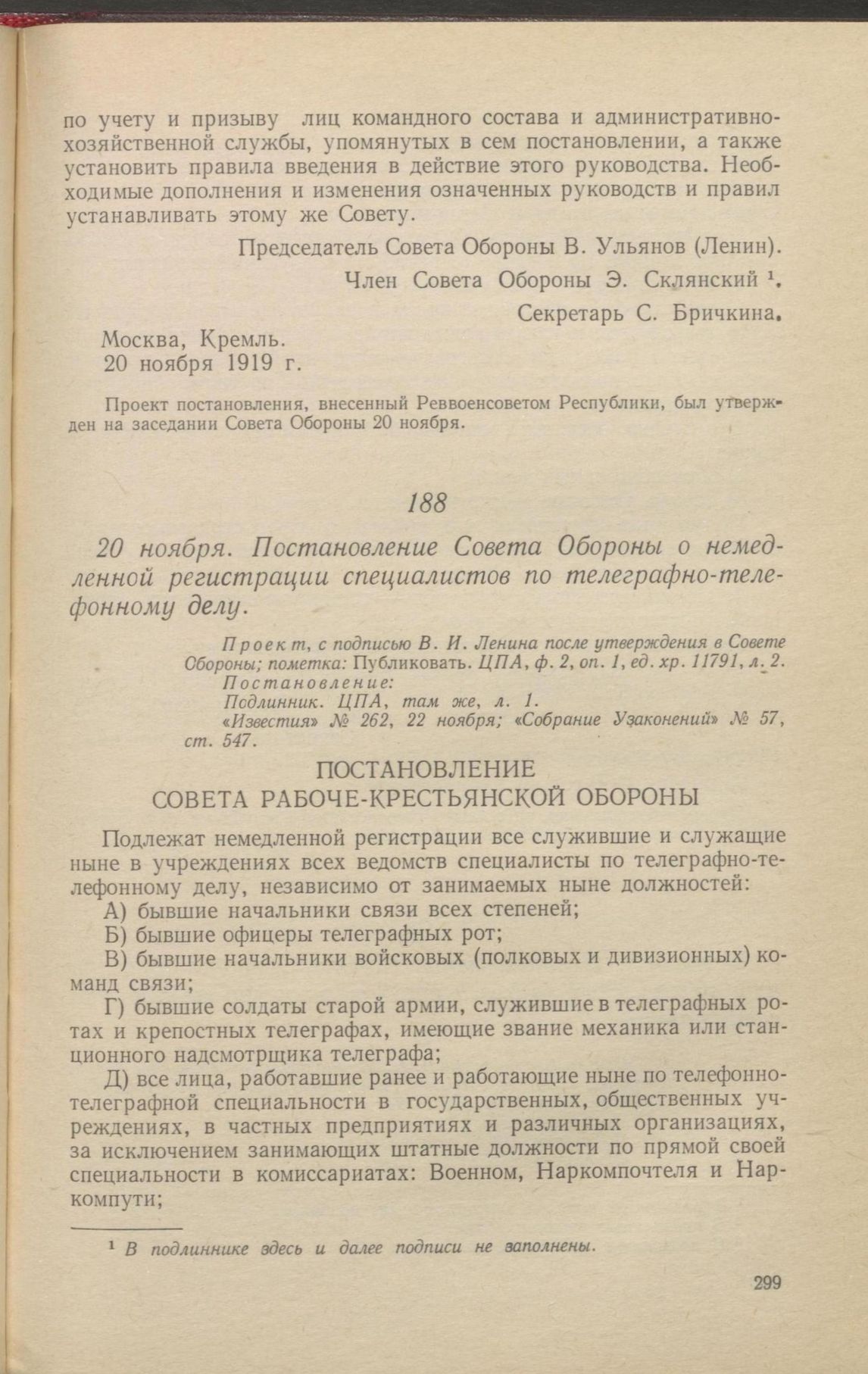 Главная Серия «Экономическая история. Документы, исследования, переводы» Декреты советской власти в 18 т. Декреты Советской власти. Т. VI. 1 августа – 9 декабря 1919 г. Документы 20 ноября. Постановление Совета Обороны о немедленной регистрации с...