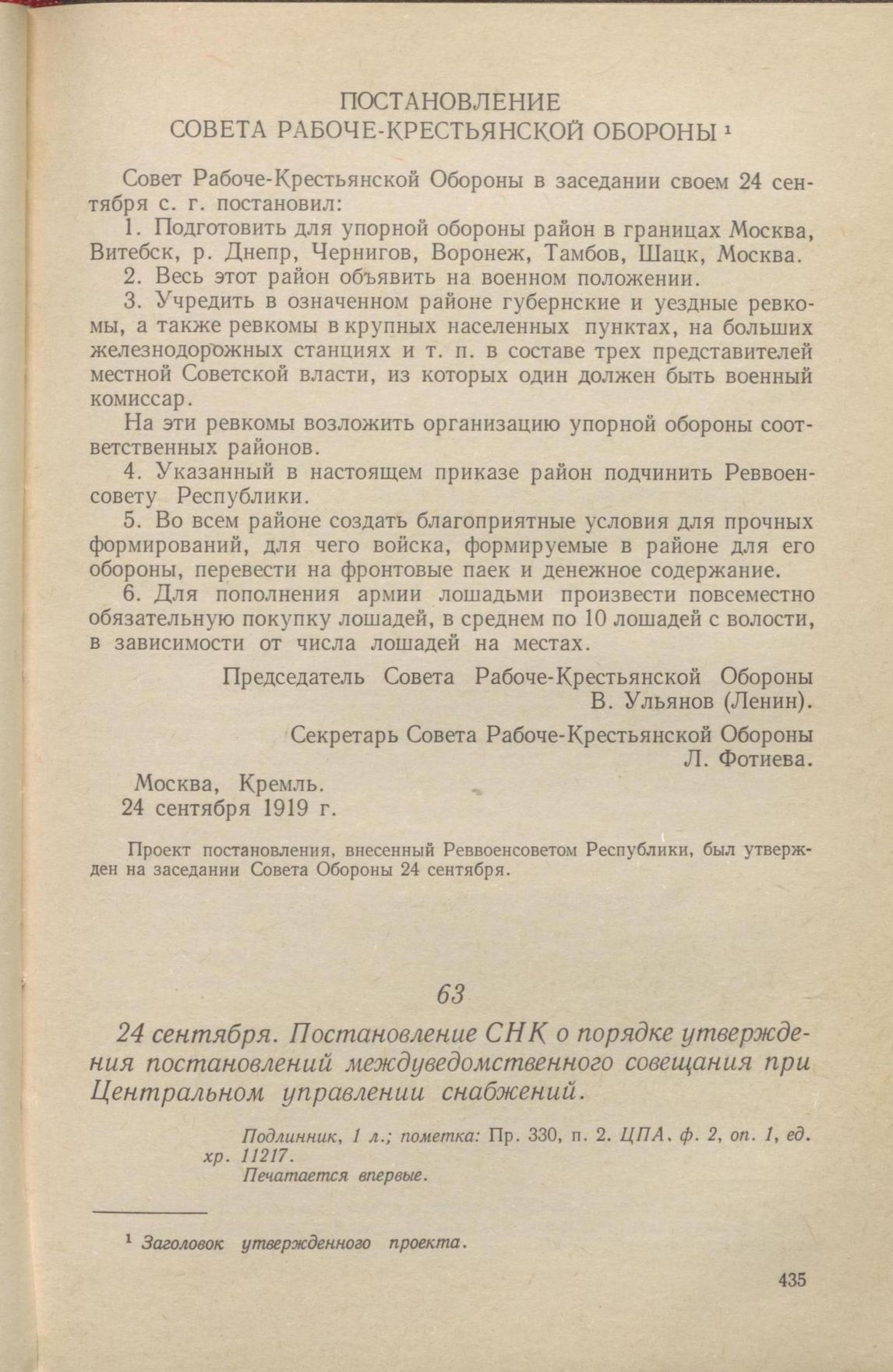 Главная Серия «Экономическая история. Документы, исследования, переводы» Декреты советской власти в 18 т. Декреты Советской власти. Т. VI. 1 августа – 9 декабря 1919 г. Документы 24 сентября. Постановление СНК о порядке утверждения постановлений ...