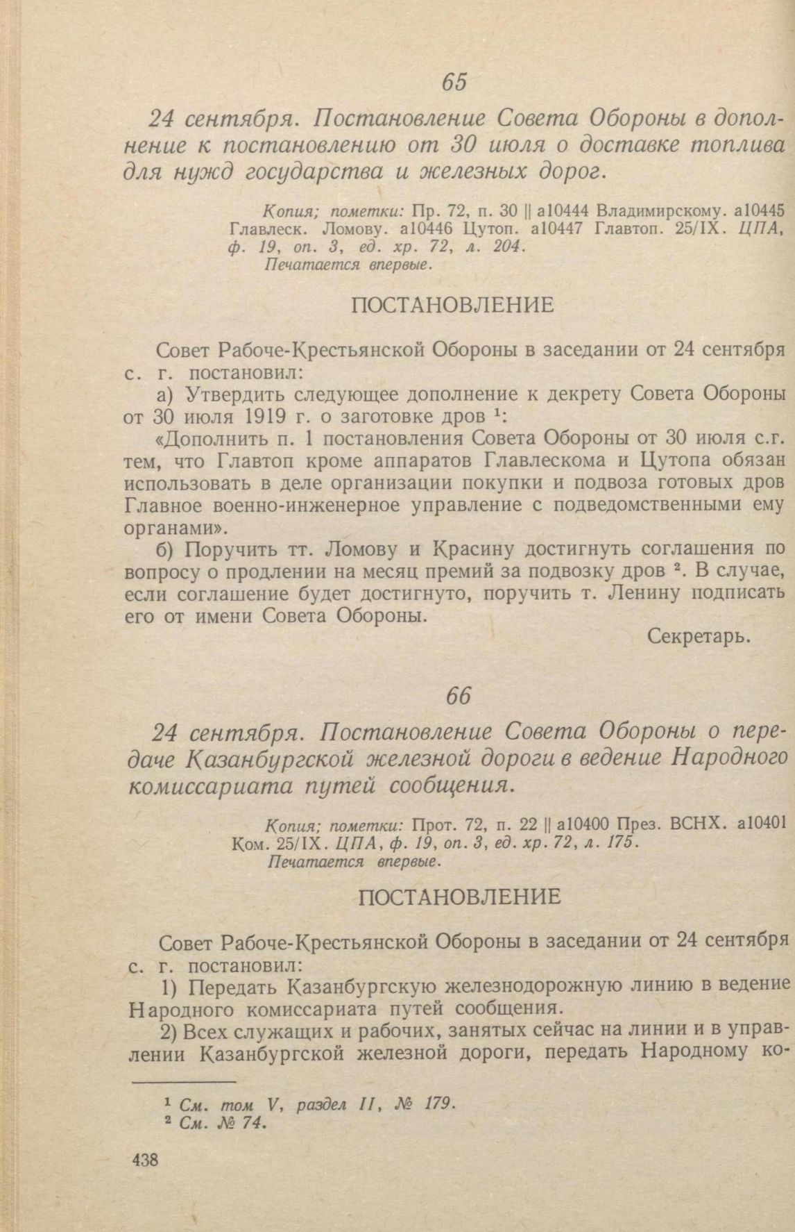 Главная Серия «Экономическая история. Документы, исследования, переводы» Декреты советской власти в 18 т. Декреты Советской власти. Т. VI. 1 августа – 9 декабря 1919 г. Документы 24 сентября. Постановление Совета Обороны в дополнение к постановле...