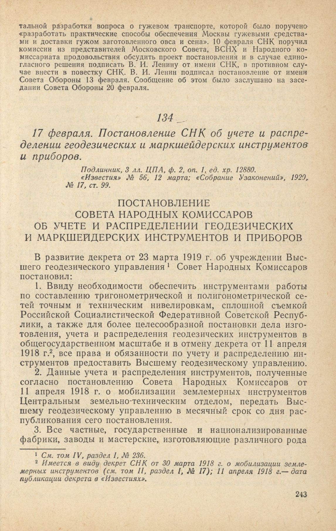 Главная Серия «Экономическая история. Документы, исследования, переводы» Декреты советской власти в 18 т. Декреты Советской власти. Т. VII. 10 декабря 1919 г. – 31 марта 192... Документы 17 февраля. Постановление СНК об учете и распределении геодезически...