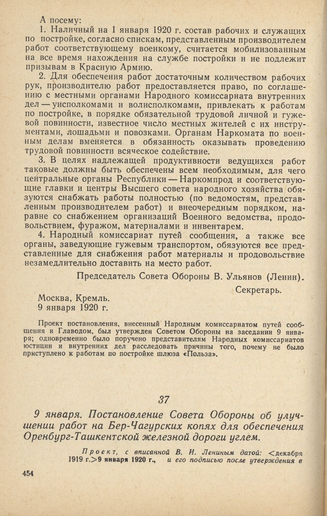 Главная Серия «Экономическая история. Документы, исследования, переводы» Декреты советской власти в 18 т. Декреты Советской власти. Т. VII. 10 декабря 1919 г. – 31 марта 192... Документы 9 января. Постановление Совета Обороны об улучшении работ на Бер-Ча...