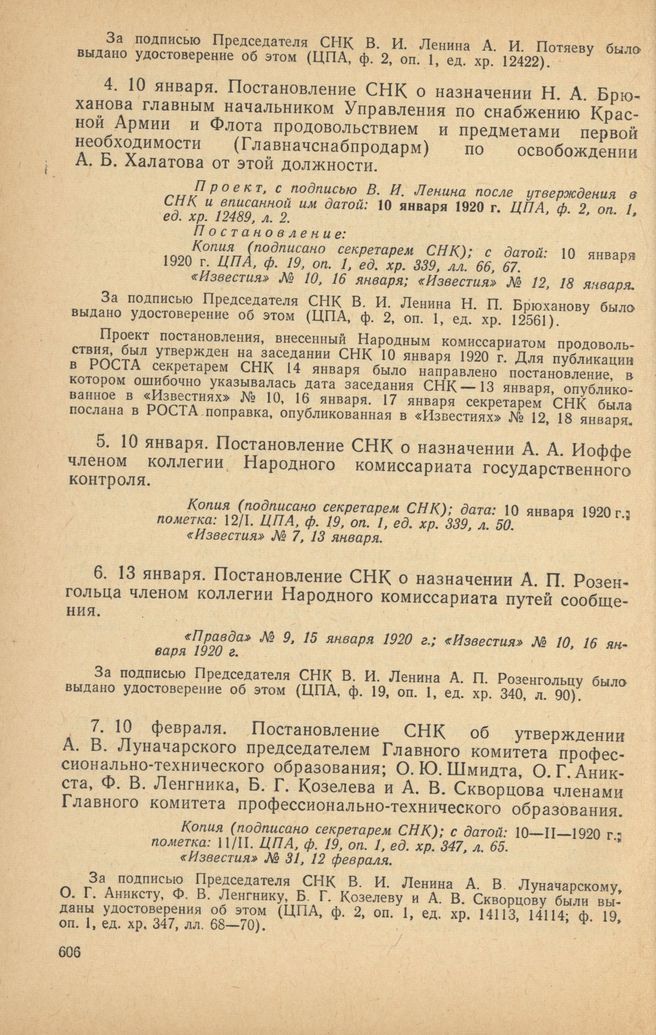Главная Серия «Экономическая история. Документы, исследования, переводы» Декреты советской власти в 18 т. Декреты Советской власти. Т. VII. 10 декабря 1919 г. – 31 марта 192... Документы 10 января. Постановление СНК о назначении А. А. Иоффе членом коллег...