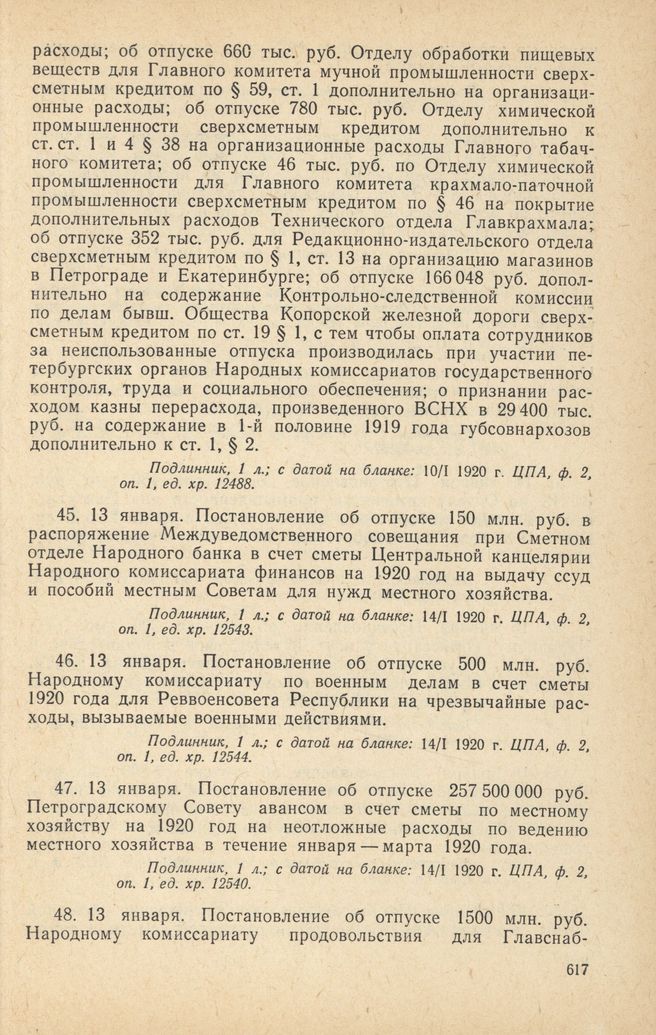 Главная Серия «Экономическая история. Документы, исследования, переводы» Декреты советской власти в 18 т. Декреты Советской власти. Т. VII. 10 декабря 1919 г. – 31 марта 192... Документы 13 января. Постановление об отпуске 1500 млн. руб. Народному комисс...