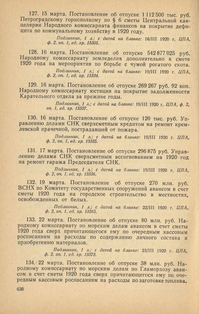 Главная Серия «Экономическая история. Документы, исследования, переводы» Декреты советской власти в 18 т. Декреты Советской власти. Т. VII. 10 декабря 1919 г. – 31 марта 192... Документы 22 марта. Постановление об отпуске 38 млн. руб. Народному комиссари...
