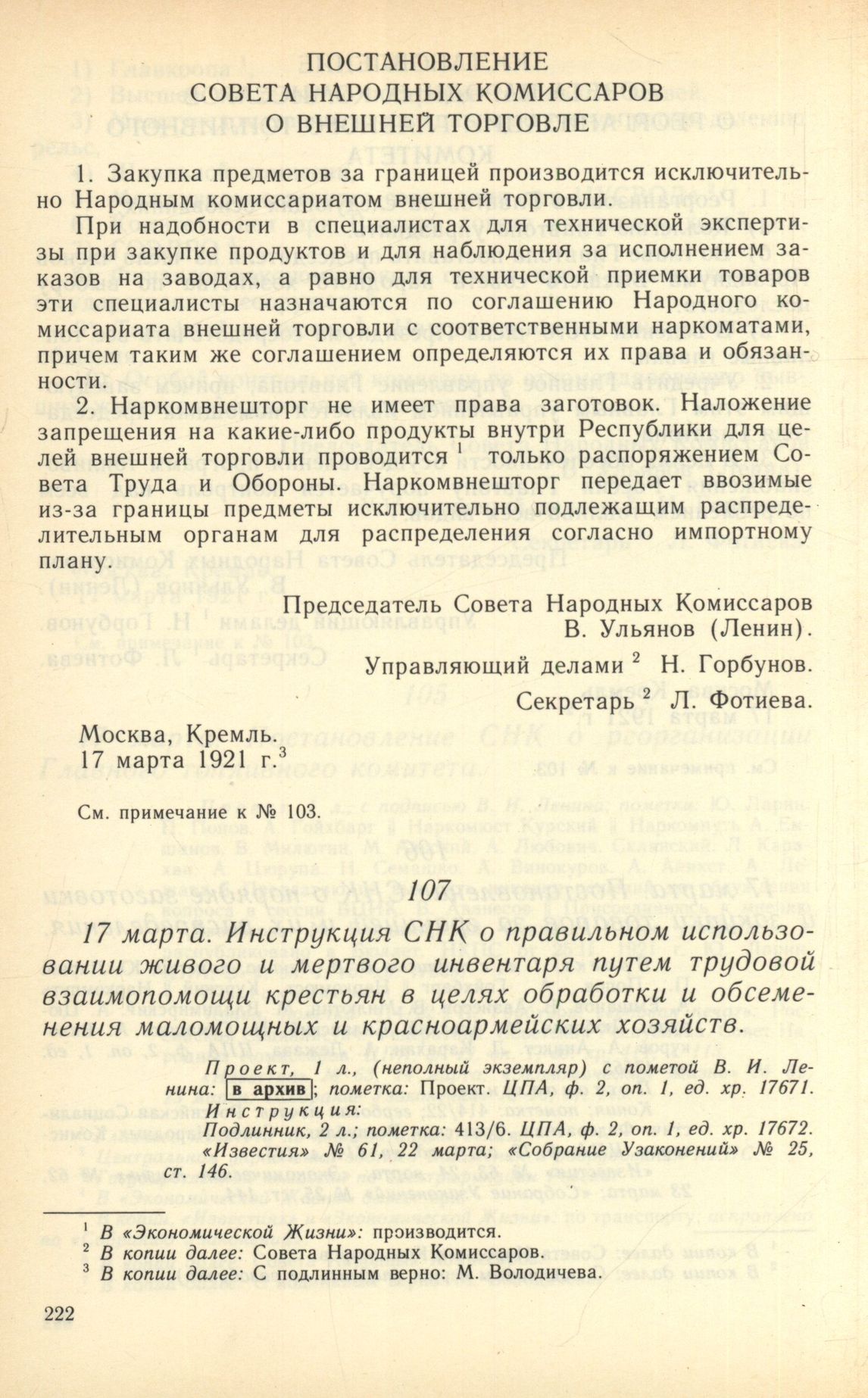 Главная Серия «Экономическая история. Документы, исследования, переводы» Декреты советской власти в 18 т. Декреты Советской власти. Т. XIII. 1 февраля – 31 марта 1921 г. Документы 17 марта. Инструкция СНК о правильном использовании живого и мертв...